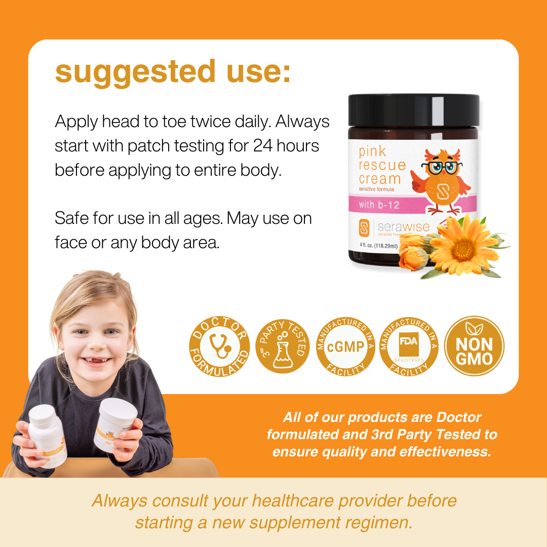• Pink Rescue Cream is formulated to be gentle and well-tolerated. Always consult your pediatric provider if you have questions specific to your child.